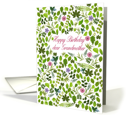 A birthday card for your grandmother. A lovely card to send birthday wishes. Say happy birthday with a card full of scattered leaves and flowers. An unusual card for a lovely lady.