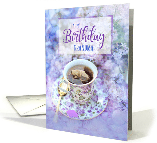For Grandmother Birthday Cup of Tea and Purple Flowers