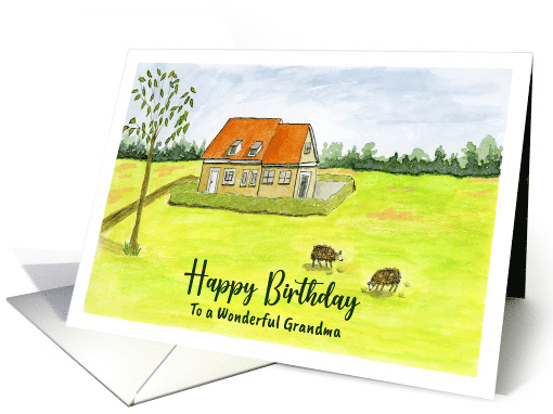 To let a wonderful Grandma know you are thinking of her, especially on her birthday, send her this heartfelt Happy Birthday card. In this illustration, a lovely farmhouse and some grazing farm animals are seen.