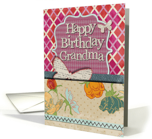 Happy Birthday Grandma Scrapbook Style Butterflies and Flowers