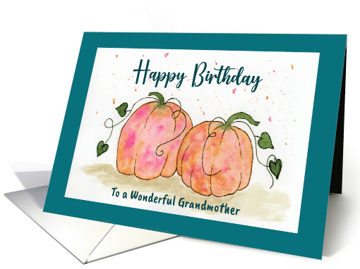 Happy Birthday Grandmother Pumpkin Patch Vine Fall Watercolor Painting