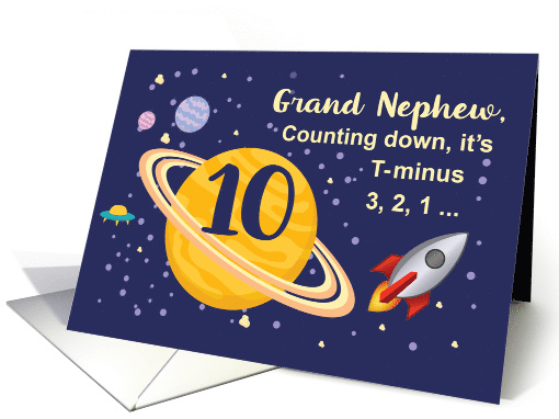 Grand Nephew 10th Birthday Planets in Outer Space with Rocket Ship