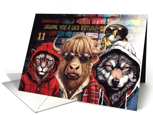 Grandnephew 11th Birthday Wild Hipster Animals with Graffiti