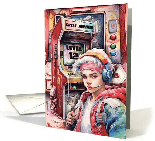 Give your great nephew awesome 12th birthday wishes with this futuristic looking video game design that is sure to appeal to a young tween boy.