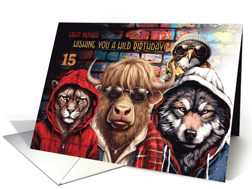 Great Nephew 15th Birthday Wild Hipster Animals with Graffiti
