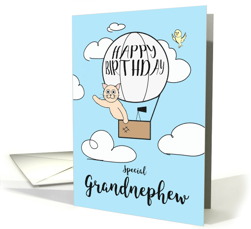 Grandnephew Birthday Across the Miles Cute Cat in Hot Air Balloon