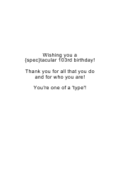A blue vintage typewriter with a sunburst background. A piece of paper from the typewriter which has the words Happy 103rd Birthday Grandpa in typewriter font and a silhouette glasses. A retro birthday card for your amazing grandpa turning 103!
