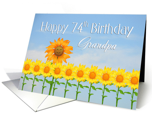 This is for a great cheerful card for a Grandpa's 74th birthday with a sky background and a row of sunflowers with one orange one standing above the rest. This card and any can be customized to fit your specific needs. Just send me a message. Some original artwork@delightfuldoodles.