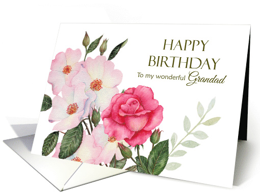 For Grandad on Birthday Watercolor Pink Roses Illustration