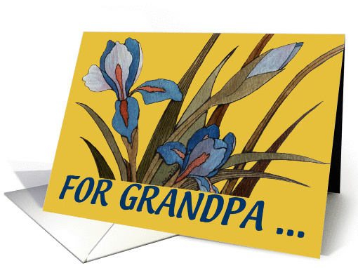 Grandpa's Iris © Diana Ting Delosh. Ink and watercolor illustration. Bold, graphic floral - homage to all the guys who like puttering in the garden.