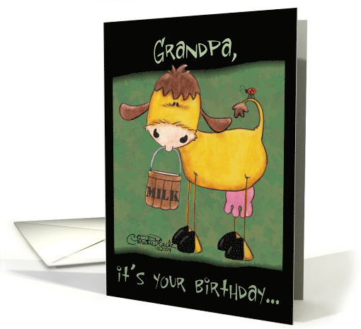 ©Christie Black. This punny card features a yellow cow holding a milk bucket in her mouth. Fun reminder to take advantage of the day.