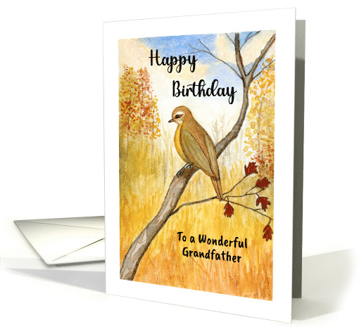 Happy Birthday Grandfather Autumn Bird Branch Fall Landscape Painting