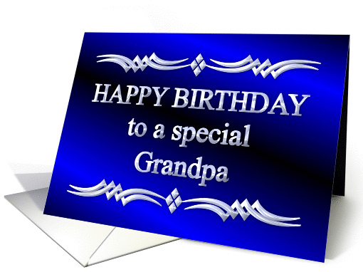 A handsome card with a blue and black background with silver lettering and flourishes to wish that special grandpa a happy birthday!