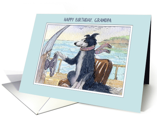 Grandpa was a salty old fella, and loved to sail on the ocean as often as possible. A Border Collie dog birthday card for grandpa.