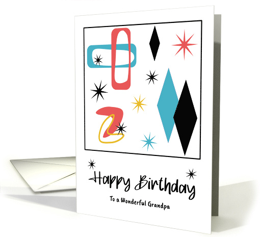 Happy Birthday Grandpa Mid Century Modern Retro Diamonds Ovals Stars