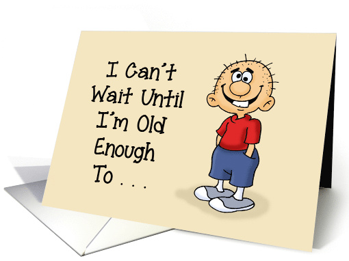 Humorous Grandfather's Birthday card with a kid-like cartoon character on a tan background. The words say: I can't wait until I'm old enough to . . . Inside says: . . . pretend I can't hear, like you do sometimes! Happy Birthday, Grandpa