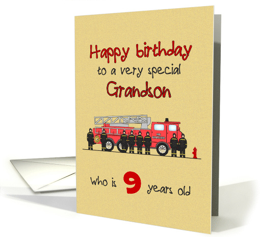 | Title: | Birthday for Grandson Custom Age Red Fire Truck and Firemen |
