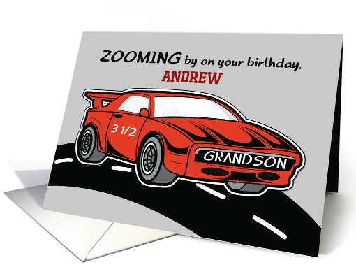 | Title: | Grandson Birthday 3 and a Half Custom Name Red Sports Car |