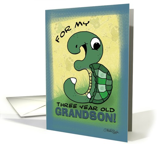 A green turtle in the shape of the number Three! Please visit www.greetingcarduniverse.com/christieblack to find more versions of this card for son, grandson, godson, nephew and "fabulous". Other years in animal shapes also available!