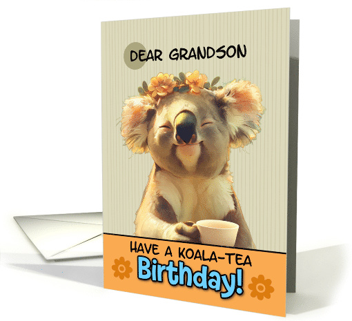 Grandson Happy Birthday Blissful Koala with Cup of Tea