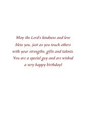 Celebrate your grandson's birthday with our rustic card, featuring a vibrant blend of wildflowers and dried berries on a warm brown backdrop. The front sends birthday blessings, setting the stage for the heartfelt message inside. This religious card beautifully conveys blessings from the Lord, acknowledging his unique strengths and talents. A perfect expression of love for a special grandson who adds light to your life. Share in the joy of his birthday with this thoughtfully crafted card, combining faith and warmth in a truly special way.