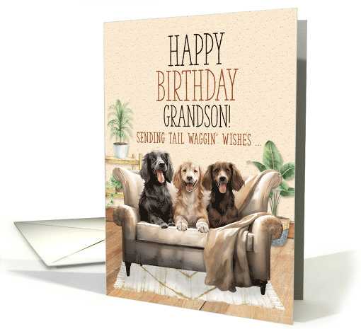 for Grandson Birthday Three Dogs on a Sofa Tali Waggin' Wishes