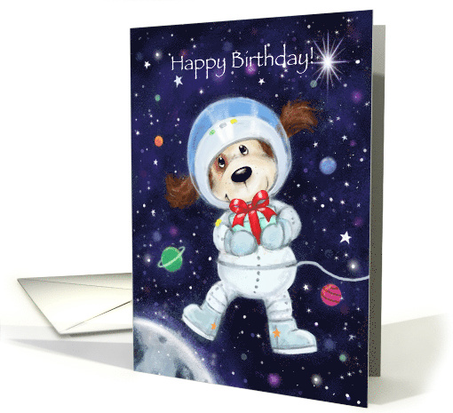 Happy Birthday my Grandson, Cute Dog Astronaut in Space