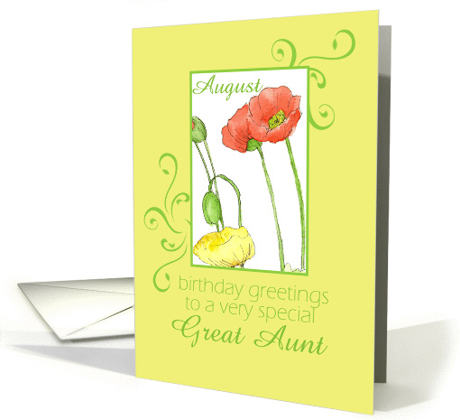 | Title: | Happy August Birthday Great Aunt Orange Poppy Flower Watercolor |