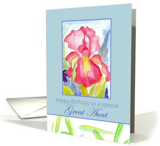 | Title: | Happy Birthday Great Aunt February Pink Iris Flower Watercolor Painting |