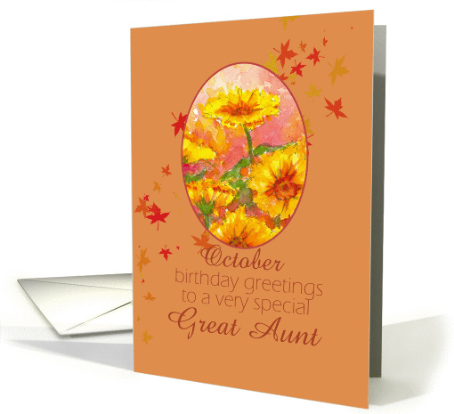 | Title: | Happy October Birthday Great Aunt Marigold Flower Watercolor |