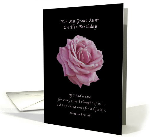 | Title: | Birthday, Great Aunt, Pink Rose on Black |