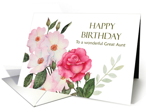 | Title: | For Great Aunt on Birthday Watercolor Pink Roses Illustration |