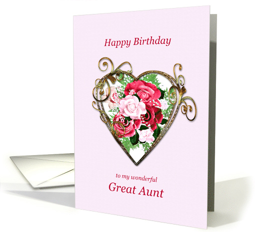 | Artist Notes: | A personal, romantic birthday card for your great aunt. A painting of roses is framed by an embellished golden heart. Give someone a birthday greeting with a beautiful bouquet of roses. |
