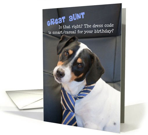 | Title: | Great Aunt Birthday Card - Dog Wearing Smart Tie - Humorous |