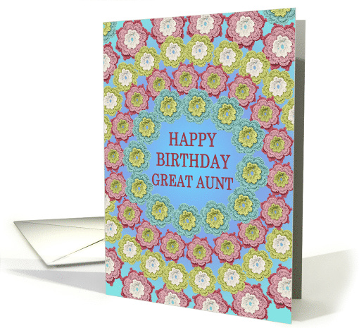 | Artist Notes: | A birthday card for your great aunt. The perfect birthday card for a crochet or knitting enthusiast. Circles of lovely crochet flowers to show of the craft. Give this Happy Birthday greetings card to someone who loves to crochet. |