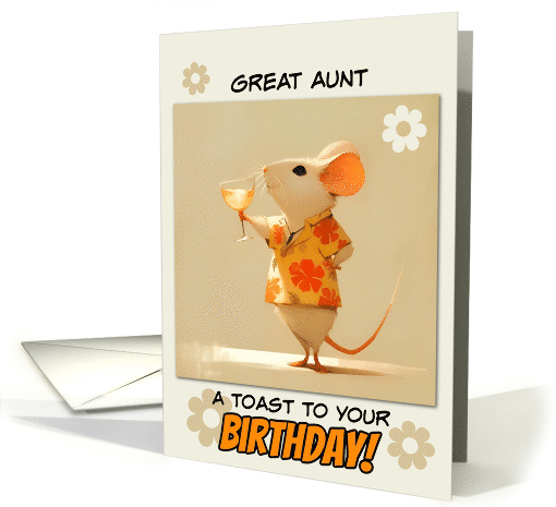 | Artist Notes: | A sweet little rat in a hawaii flower shirt is lifting a cocktail glass in your honor on a beige background with a flower pattern and the text "A toast to your birthday!" A fun card to send to your wonderful great aunt for their special day. |