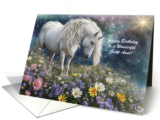 | Title: | Great Aunt Happy Birthday with Pretty Unicorn and Flowers Custom |