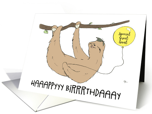 | Title: | Special Great Aunt Birthday Humorous Slow Speaking Sloth with Balloon |