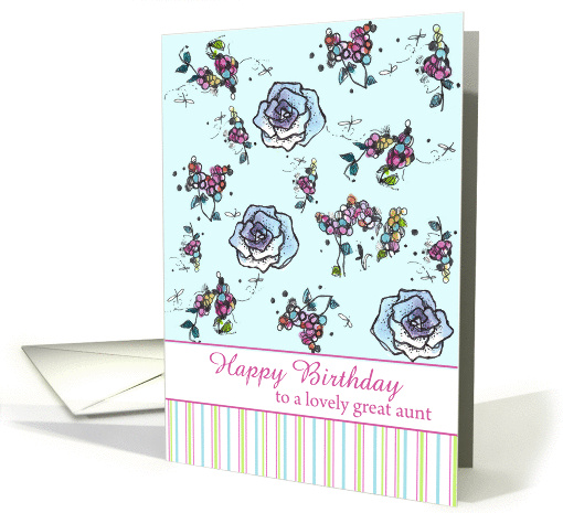 | Title: | Happy Birthday Great Aunt Blue Roses Flower Drawing |