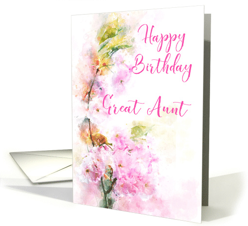 | Title: | Happy Birthday Great Aunt Pink Flowering Cherry Watercolor |