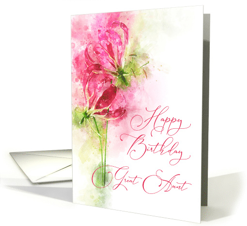 | Title: | Happy Birthday Great Aunt Pink lily gloriosa Flowers Watercolor |