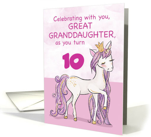 Write your Great Granddaughter’s age. This Custom Age design is perfect for her Birthday. This horse-like guest comes to the party with your best wishes and wearing her digital gold crown. She will be delighted to receive this unicorn princess.