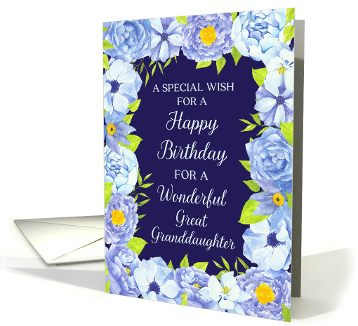 Blue Watercolor Flowers Great Granddaughter Birthday Card