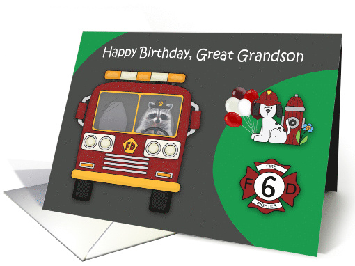 6th Birthday to Great Grandson Firefighter Theme with a Raccoon