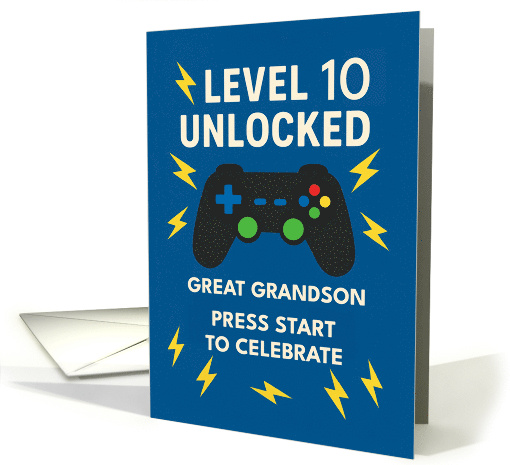 Level 10 and loving it! Celebrate your great grandson’s double-digit birthday with this gamer-themed card filled with bold graphics, a game controller, and lightning bolts that capture the fun. “Level 10 Unlocked” makes it perfect for any boy who’s growing up strong, smart, and full of spirit. The birthday message inside lets him know he’s admired and celebrated today and every day.
