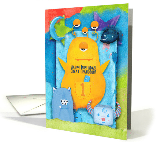 Happy 1st Birthday Great Grandson Colorful Monsters