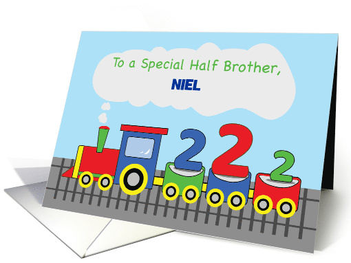 | Artist Notes: | Share with a half-brother this colorful train card to greet him when he celebrates a 2nd birthday. If your half-brother is one of those celebrating soon then it’s high time you get a copy of this to give him. Don’t forget to personalize this with his name. |
