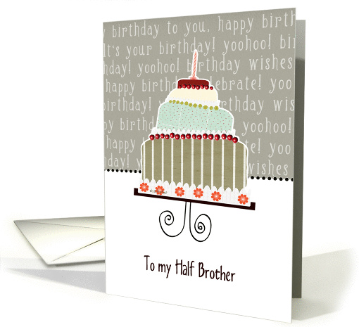 | Artist Notes: | Wish your half brother a happy birthday with this contemporary card featuring a cake, a candle and cherries in a scrapbook, modern look. You can edit text inside. Custom requests welcome. |