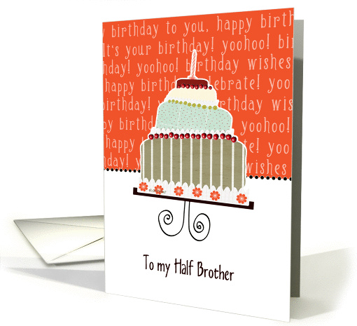 | Artist Notes: | Wish your half brother a happy birthday with this contemporary card featuring a cake, a candle and cherries in a scrapbook, modern look. You can edit text inside. Custom requests welcome. |