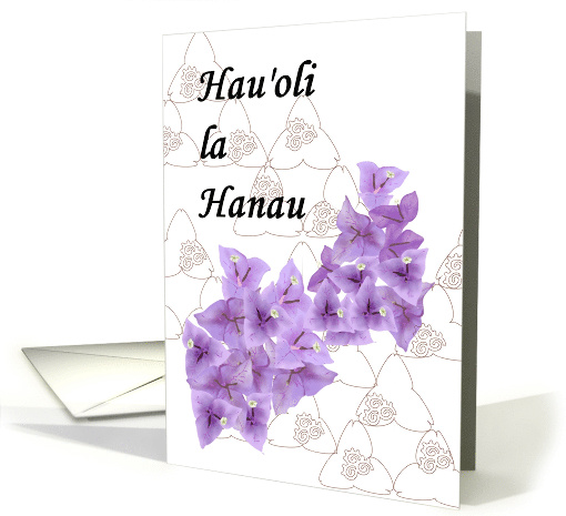 | Title: | Hau'oli la Hanau Hawaiian Birthday Greeting Purple Bougainvillea |